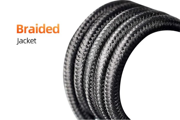 • Braided outer jacket offers enhanced durability and protection against bending or fraying.