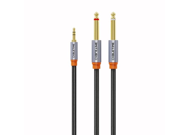 CABLETIME 3.5mm to dual 6.35mm splitter cable creates a professional-grade connection from your laptop, phone, tablet, or PC with a 3.5mm stereo output to AV receivers, mixers, amplifiers, and home theater systems with dual 6.35mm mono jack inputs. It’s ideal for recording equipment, multimedia speakers, and Hi-Fi audio systems—ensuring a clear and precise audio signal path.