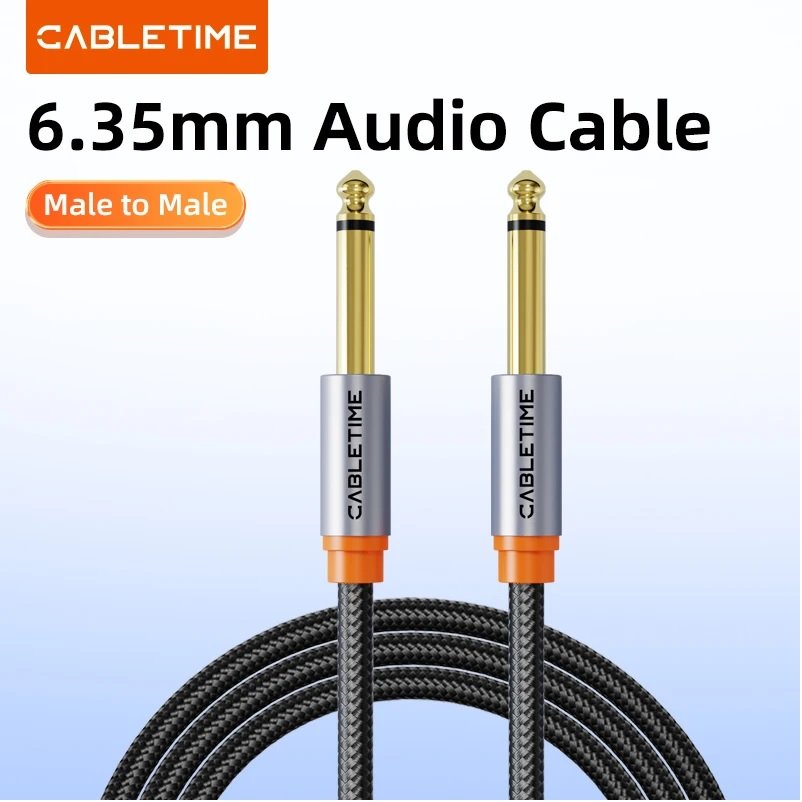 CABLETIME 6.35mm TS Male to Male Mono Audio Cable is engineered for musicians and audio professionals seeking dependable performance. Designed to handle unbalanced mono signals, it connects seamlessly between guitars, amps, mixers, and effects units.Crafted with gold-plated connectors and a tinned copper conductor, this cable ensures clear audio with minimal interference. The aluminum alloy shell adds durability, while the braided PVC jacket provides flexibility and protection against wear and tangles. With built-in aluminum foil shielding and a 26AWG wire gauge, you can count on reduced signal loss and interference during recording or live performance.Whether you’re gigging on stage or setting up in the studio, the 1/4 ts cableis built to handle the demands of serious audio work.