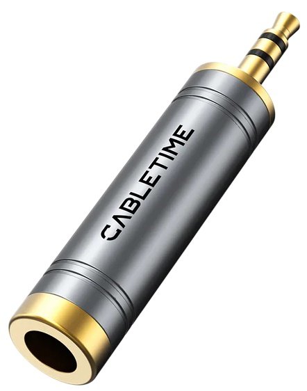 Connect your guitar or professional audio equipment to your phone or amplifier with CABLETIME 6.35mm to 3.5mm adapter. Enjoy crystal-clear Hi-Fi sound, premium 24k gold-plated connectors, and a durable aluminum build for lasting performance.