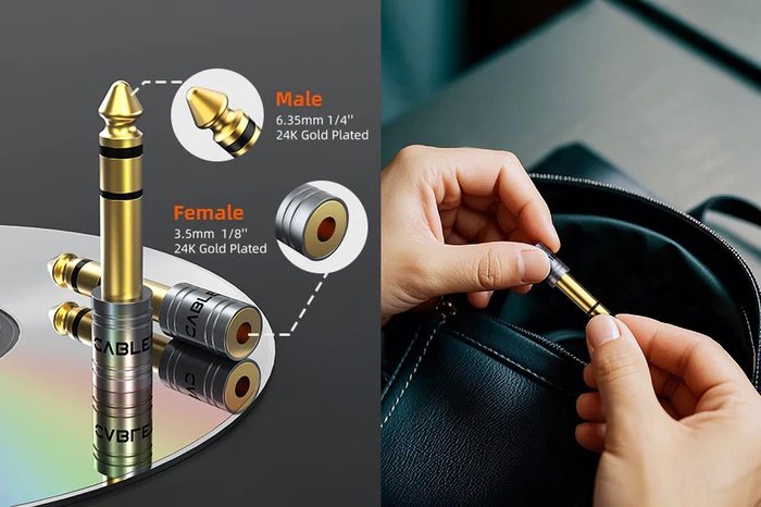 The 6.35mm 1/4 male to 3.5mm 1/8 female stereo headphone adapter allows musicians and audio enthusiasts to easily connect their professional audio equipment, such as guitars, keyboards, and amplifiers, to everyday devices like smartphones, tablets, or laptops.Whether you’re recording, practicing, or enjoying music, it makes high-quality audio accessible anywhere.