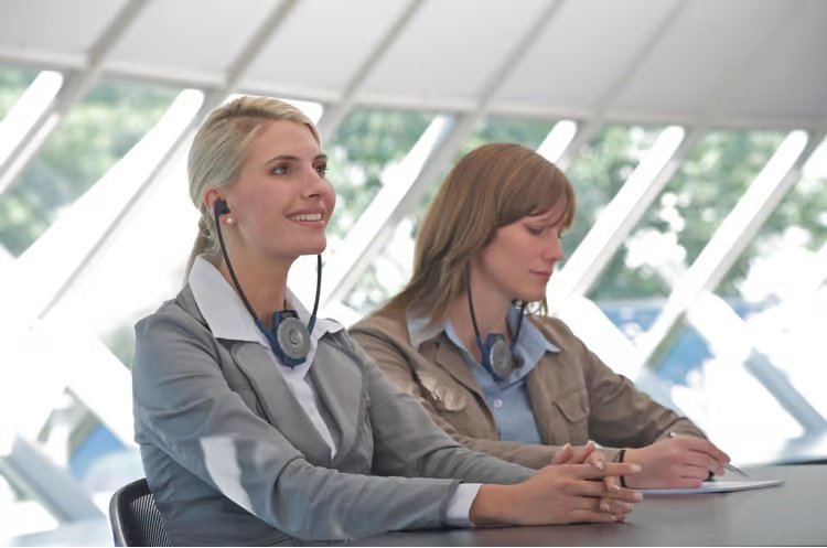 The digital Tourguide 2020-D doesn’t require special technical knowledge. Its intelligent technology ensures absolutely simple handling. The system is quickly set-up for operation, receiver channels can be synchronized at the push of a button while still in the charging bay. The whole system is designed for ease of use. The HDE stethoset combines receiver and headphones in one device. It switches on automatically when put on, immediately ready to operate. That’s as simple and intuitive as it gets.
