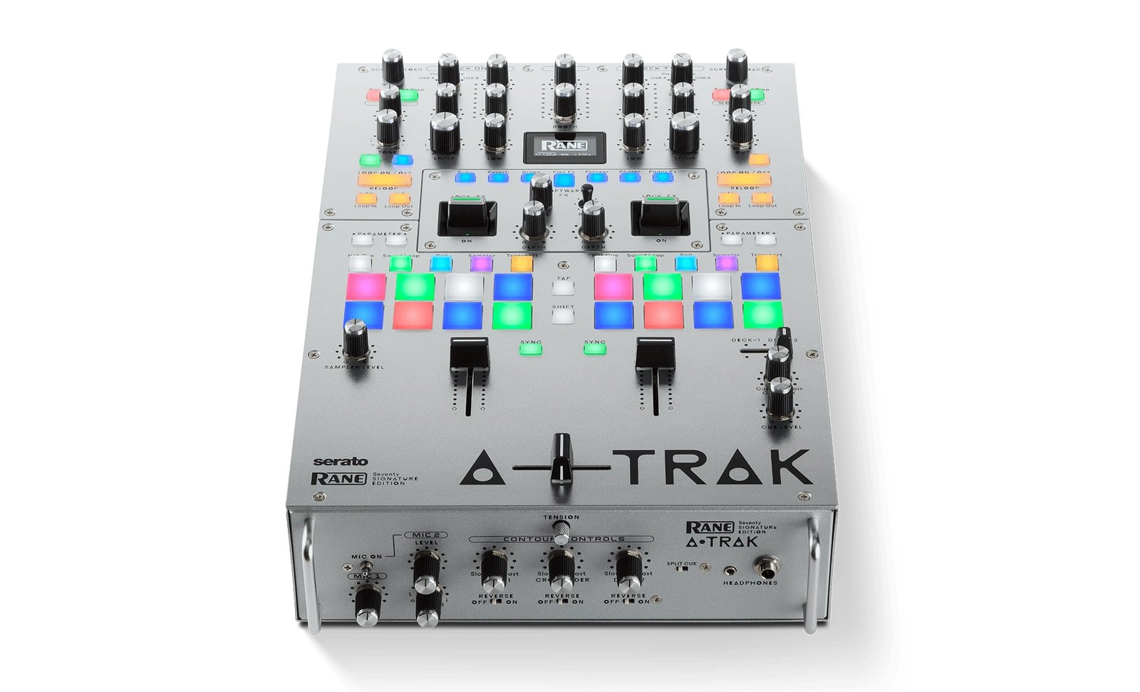 The exterior of the SEVENTY A-TRAK SIGNATURE EDITION features a stunning silver finish than gleams beneath the aluminum-capped rotary-styled knobs and encoders.