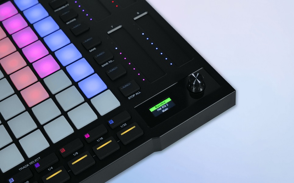 APC64 includes a smart color LED screen with a fast push encoder for real-time visual feedback of your parameters. Move around Ableton Live’s devices and mixing environments while keeping track of each parameter on the screen. APC64 also features dedicated transport control with Play, Stop, and Record for capturing your ideas along with 8 Track Mute and Solo buttons for mixing and live performance.