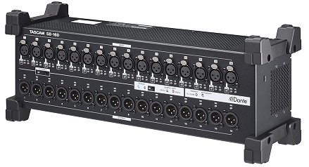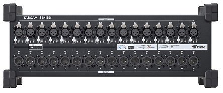 16-in/16-out Dante analog converter with built-in 32-bit ADC & Class 1 HDIA mic preamps. Controllable with TASCAM IO Control app or with TASCAM Sonicview series.