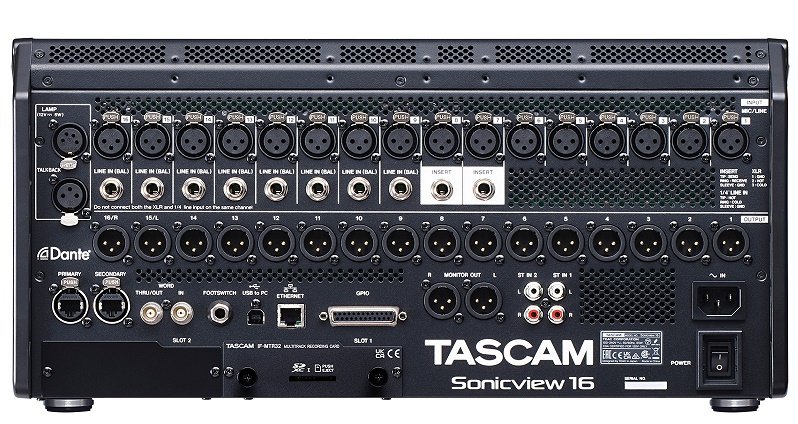 In addition to intuitive control brought about by multiple color touch displays,TASCAM Sonicview recording and mixing consoles integrate beautifully with the rest of your system, thanks to built-in Dante networking, a 32-bit/96 kHz multi-channel USB audio interface, built-in 32-channel multi-track SD recording*, and plenty of I/O.