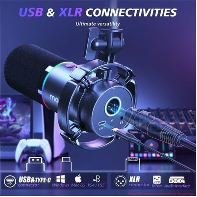 Explore the dual connectivity of the PD200X microphone with both USB and XLR interfaces. In USB mode, enjoy hassle-free plug-and-play compatibility with Windows, Mac OS, and Android. Switch to XLR mode for seamless integration with professional interfaces and mixers. This versatile design provides flexible recording solutions and adds more professional options to your creations.